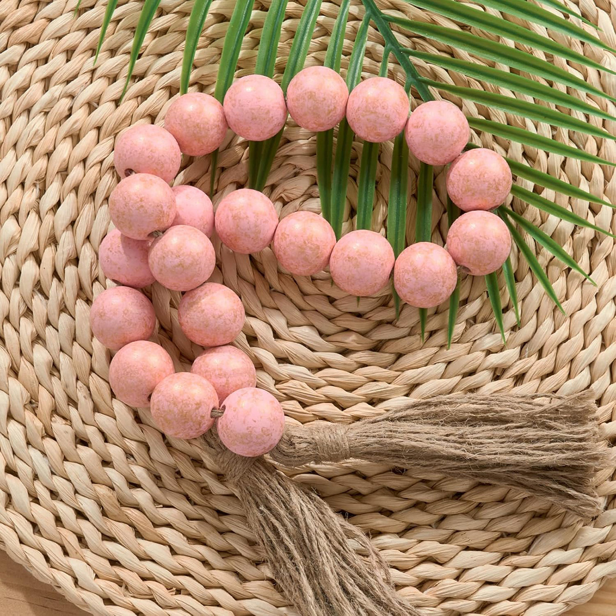 1.2" Large Wood Bead Garland with Tassels, 35.5" Long Boho Farmhouse Beads Garland, Rustic Pink