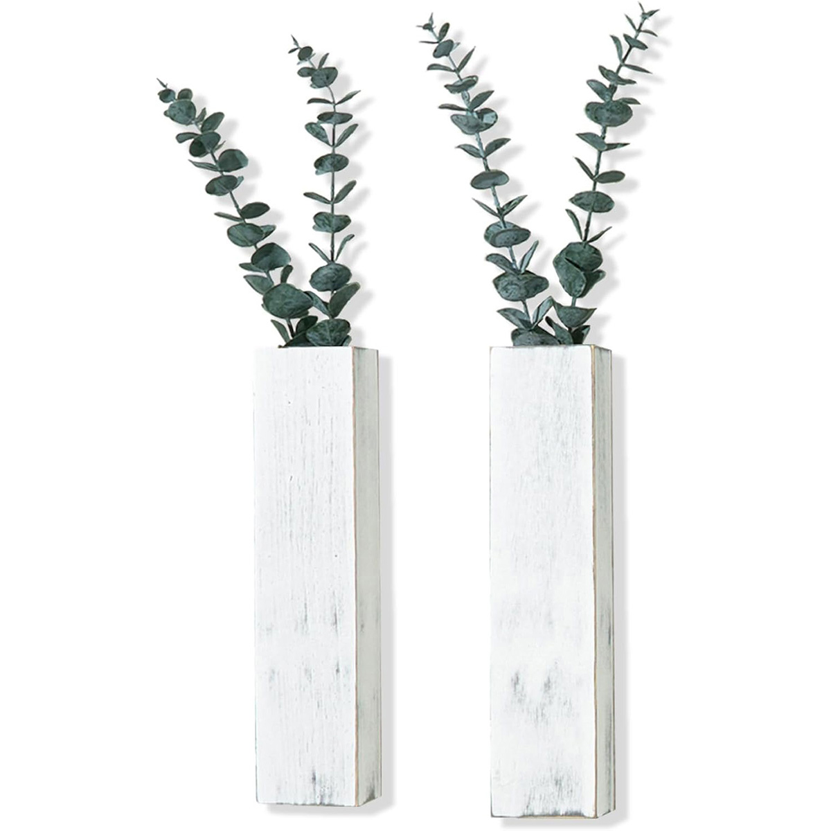 2 Packs Wood Wall Planters with Artificial Plant Eucalyptus, Plant Wall Decor, Rustic White