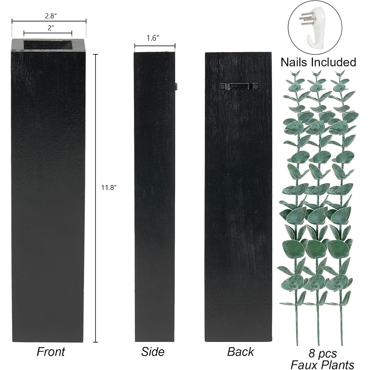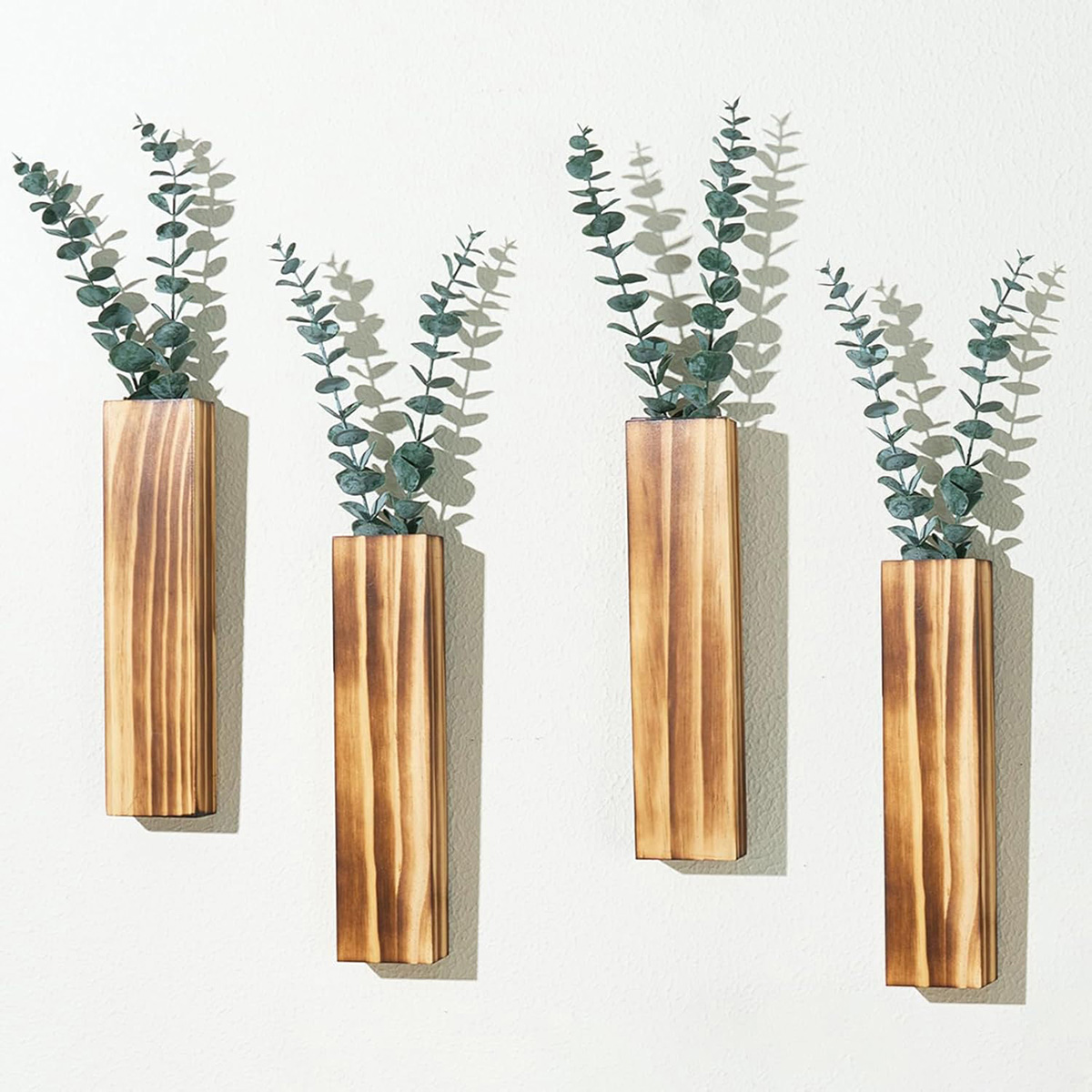4 Packs Wood Wall Planters with Artificial Plant Eucalyptus, Plant Wall Decor, Black