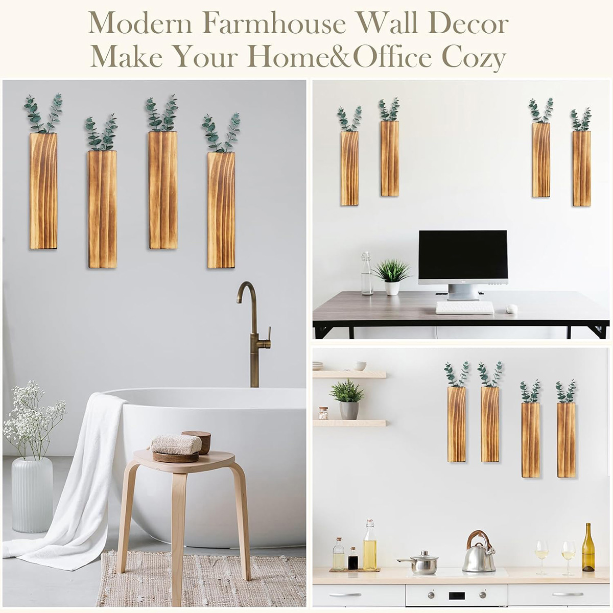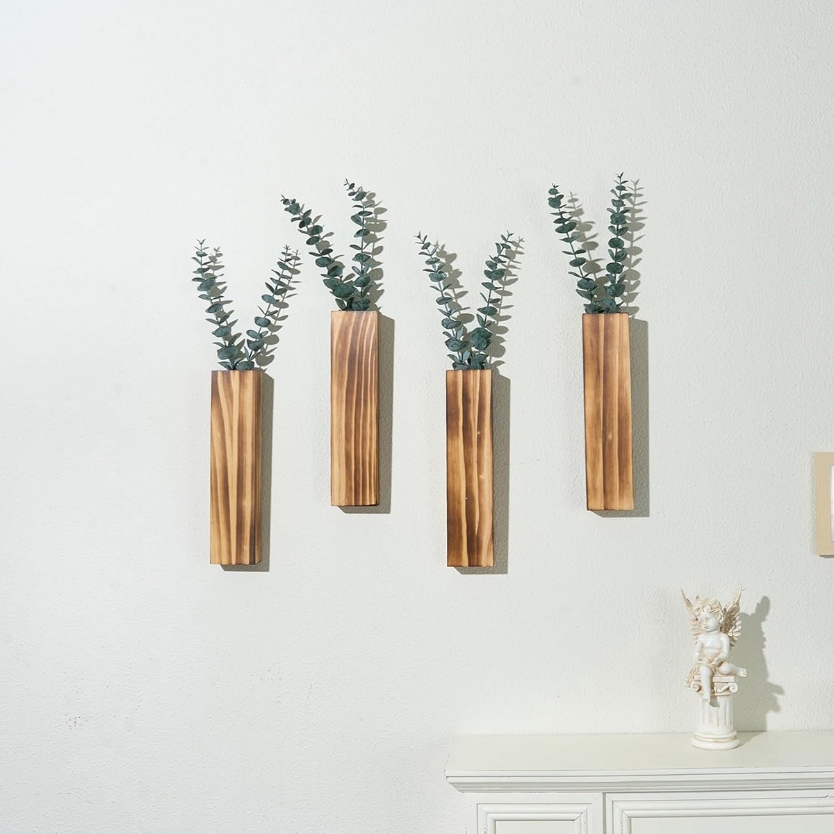 - Size Details: Each vertical wall decor wall vase measures 11.8 x 2.8 x 1.6 inches. You can use the wood wall planters with faux eucalyptus or artificial plants for wall decoration, can add warm atmosphere to your room office, is unique modern, farmhouse, rustic, shabby chic decor.