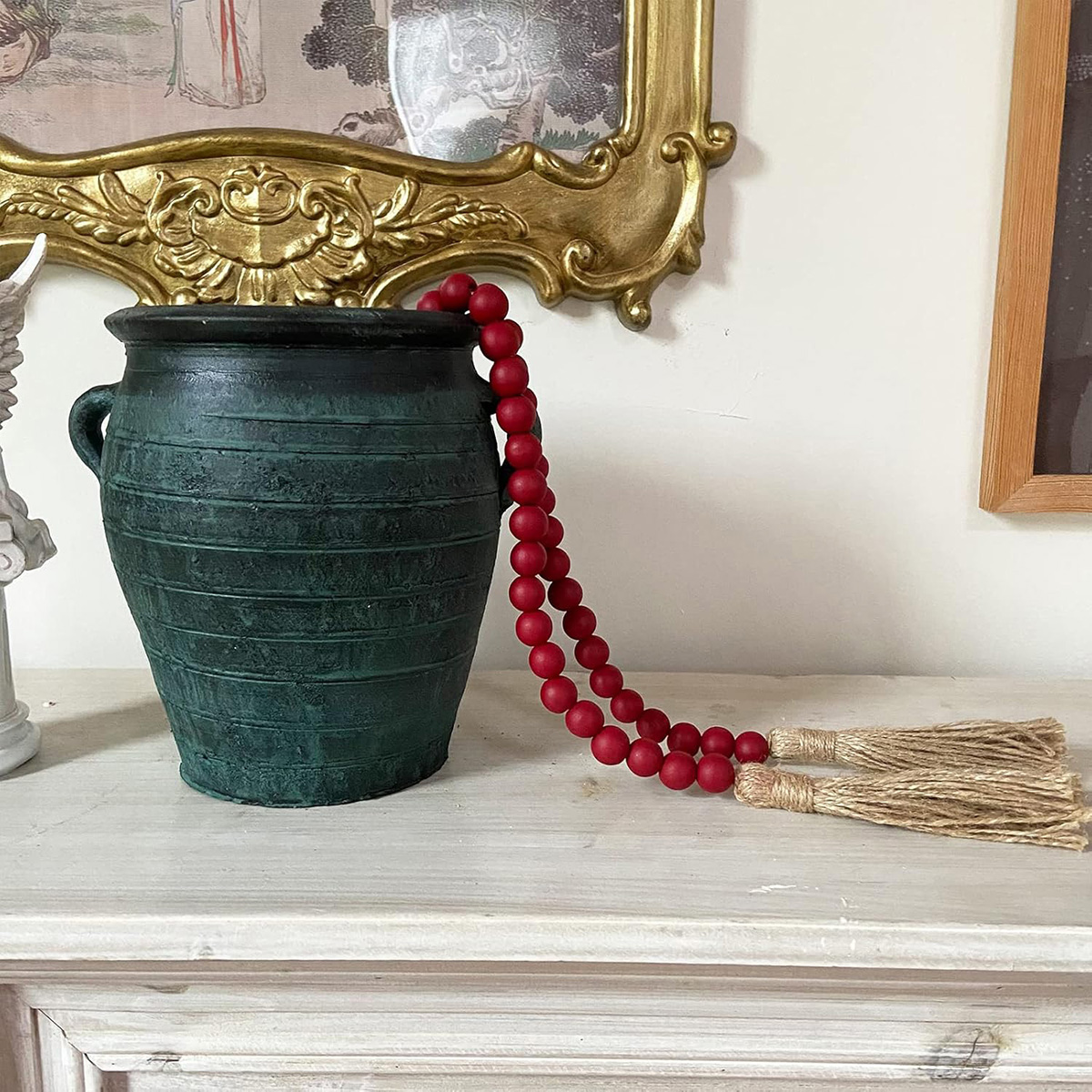 - 【Wooden Garland Decor】 The total length of the wooden bead tassel garland is 59 inches, using 16 mm wooden beads design, burgundy beads finish. Boho garland hanging wall with elegant classic design, suitable for home decoration, can add more joy for daily life, is a birthday gift for loved ones, wife, girlfriend, friends, family, housewarming gift.