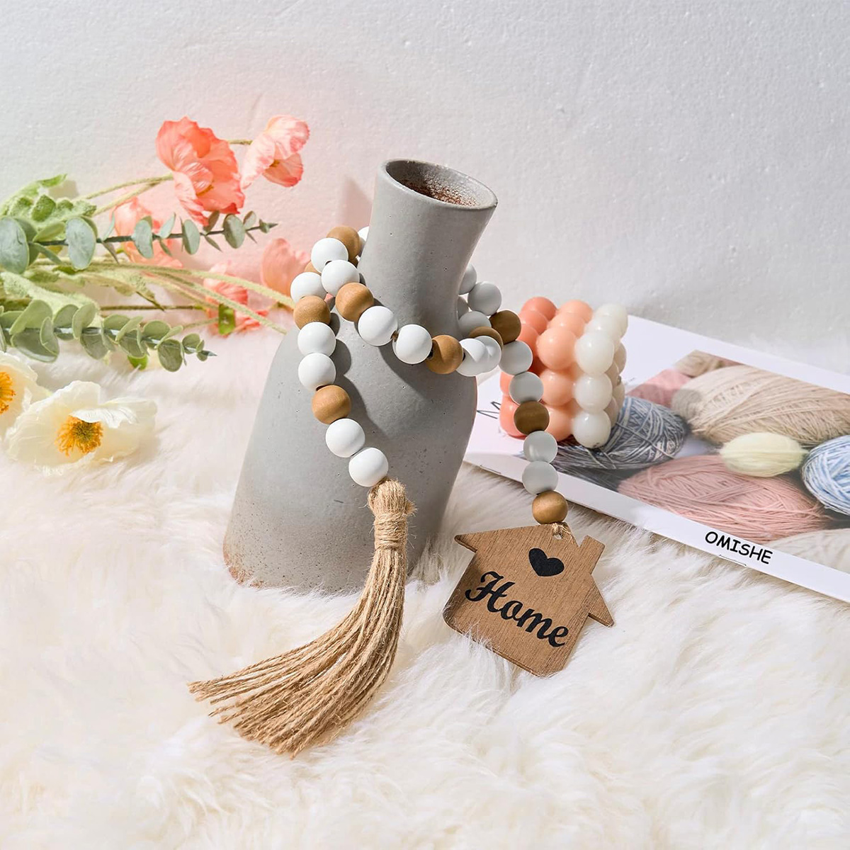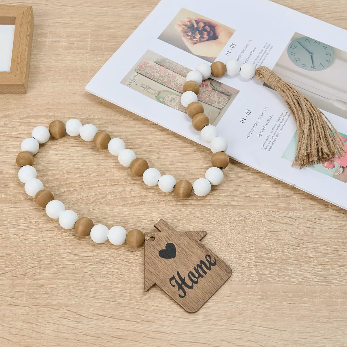 - NATURAL MATERIALS: Home decor tassels garland is made of wooden beads, twine to make a natural wooden bead string, bring your family, wife, husband, children, grandfather, grandmother a sense of relaxation and happiness in daily life, you can use it as wood decor for table, bookshelf decor, coffee table decor, wooden decor, fireplace garland mantle decor.
