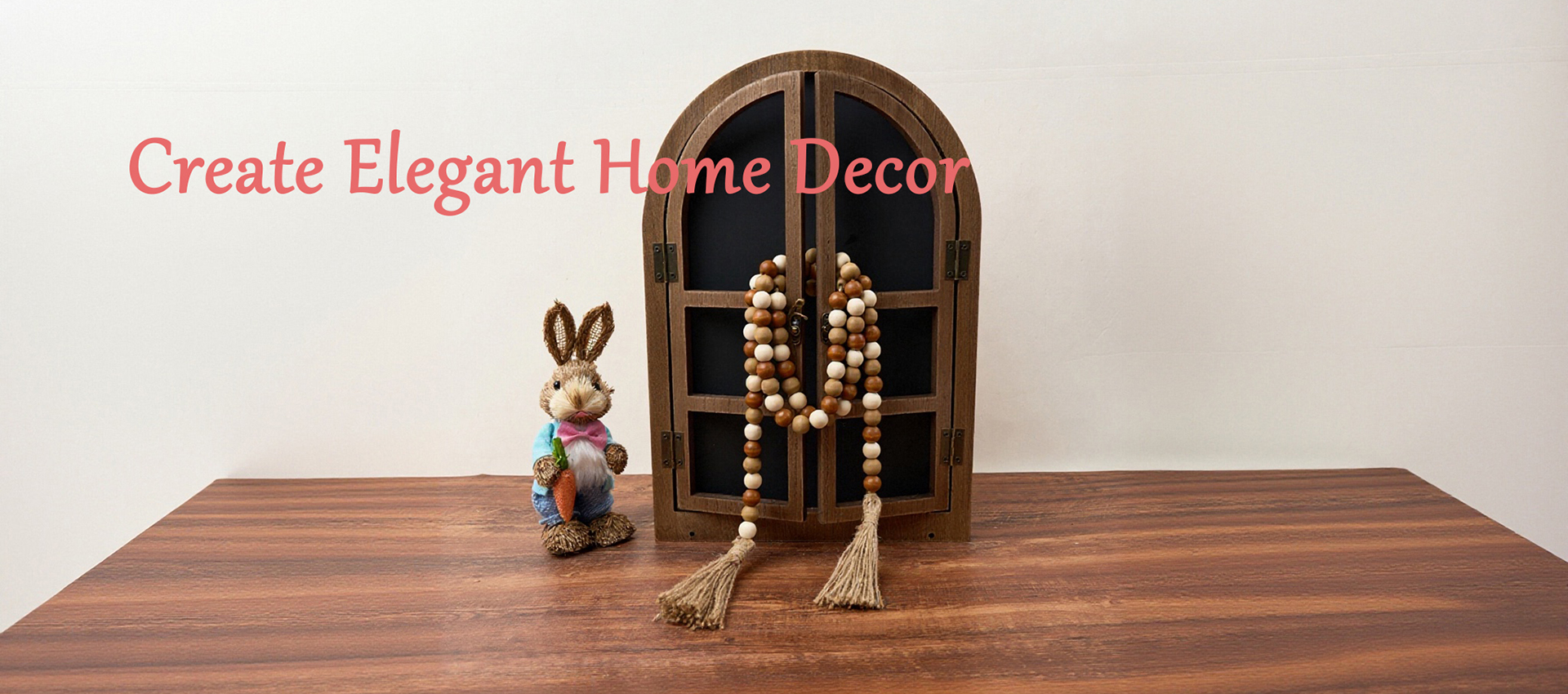 59in Wood Bead Garland with Tassels, Farmhouse Wooden Beads Garland, Natural Beige