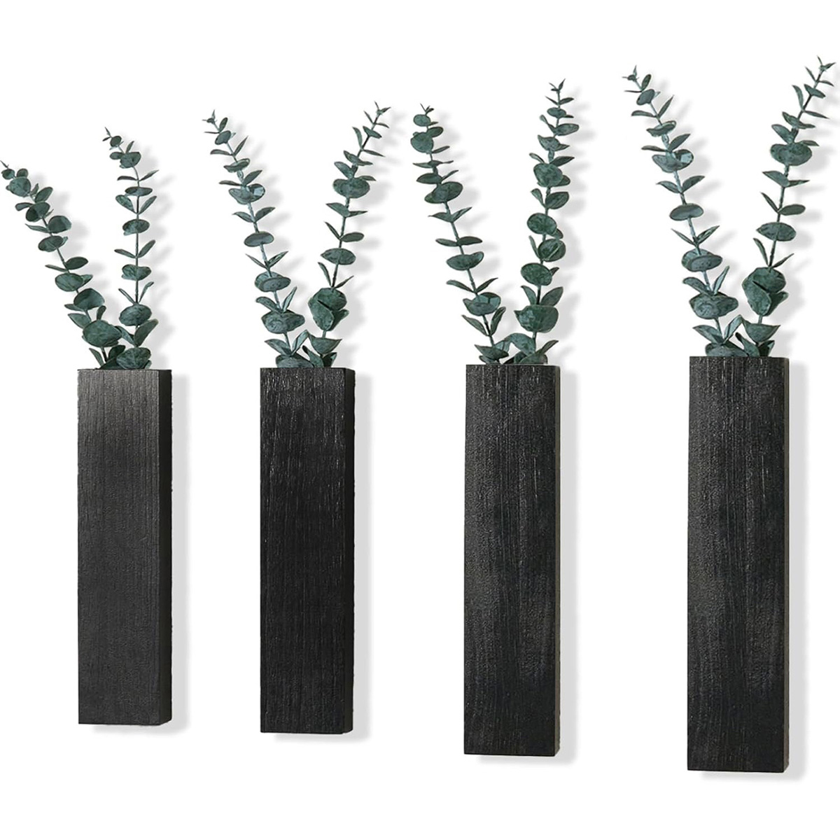 4 Packs Wood Wall Planters with Artificial Plant Eucalyptus, Plant Wall Decor, Black