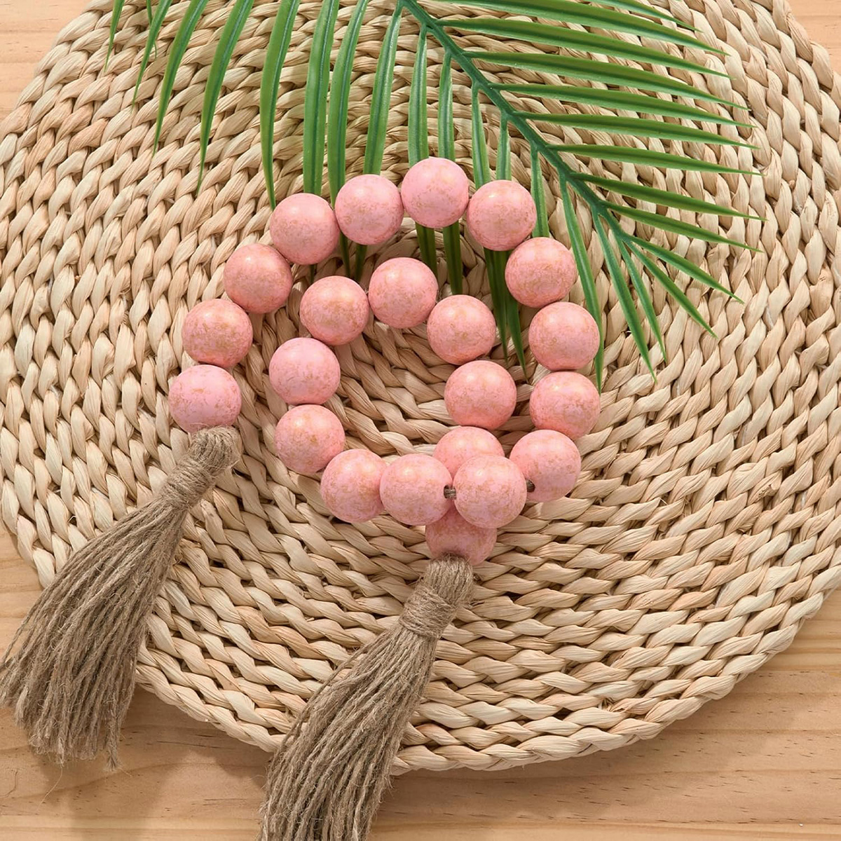 1.2" Large Wood Bead Garland with Tassels, 35.5" Long Boho Farmhouse Beads Garland, Rustic Pink