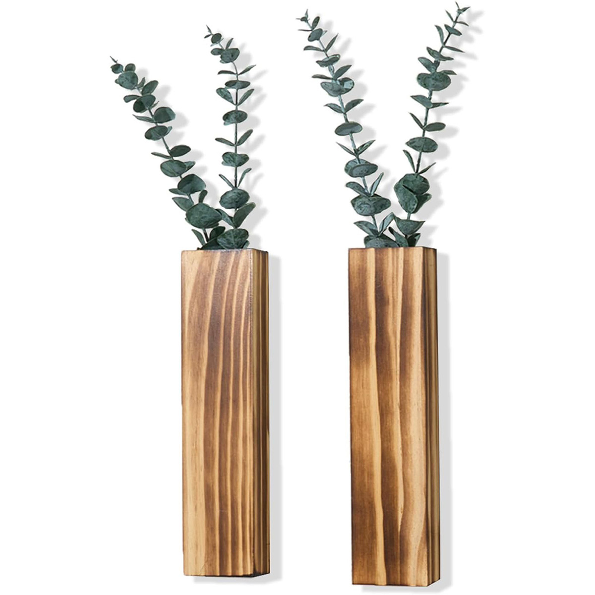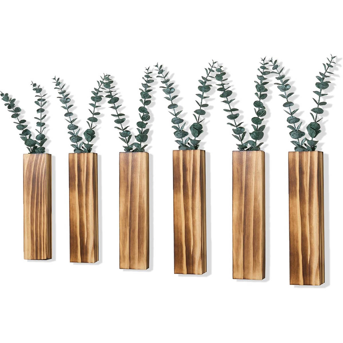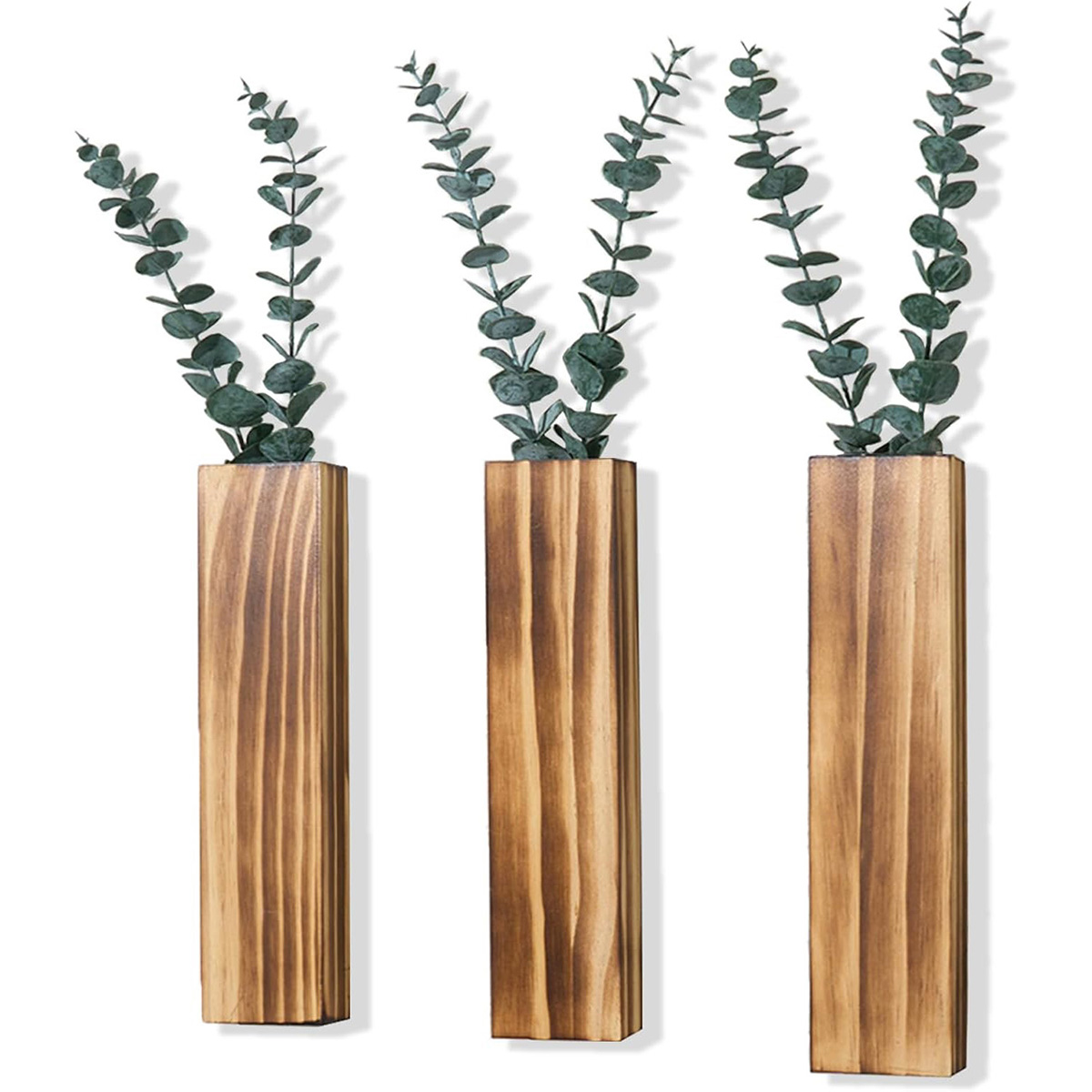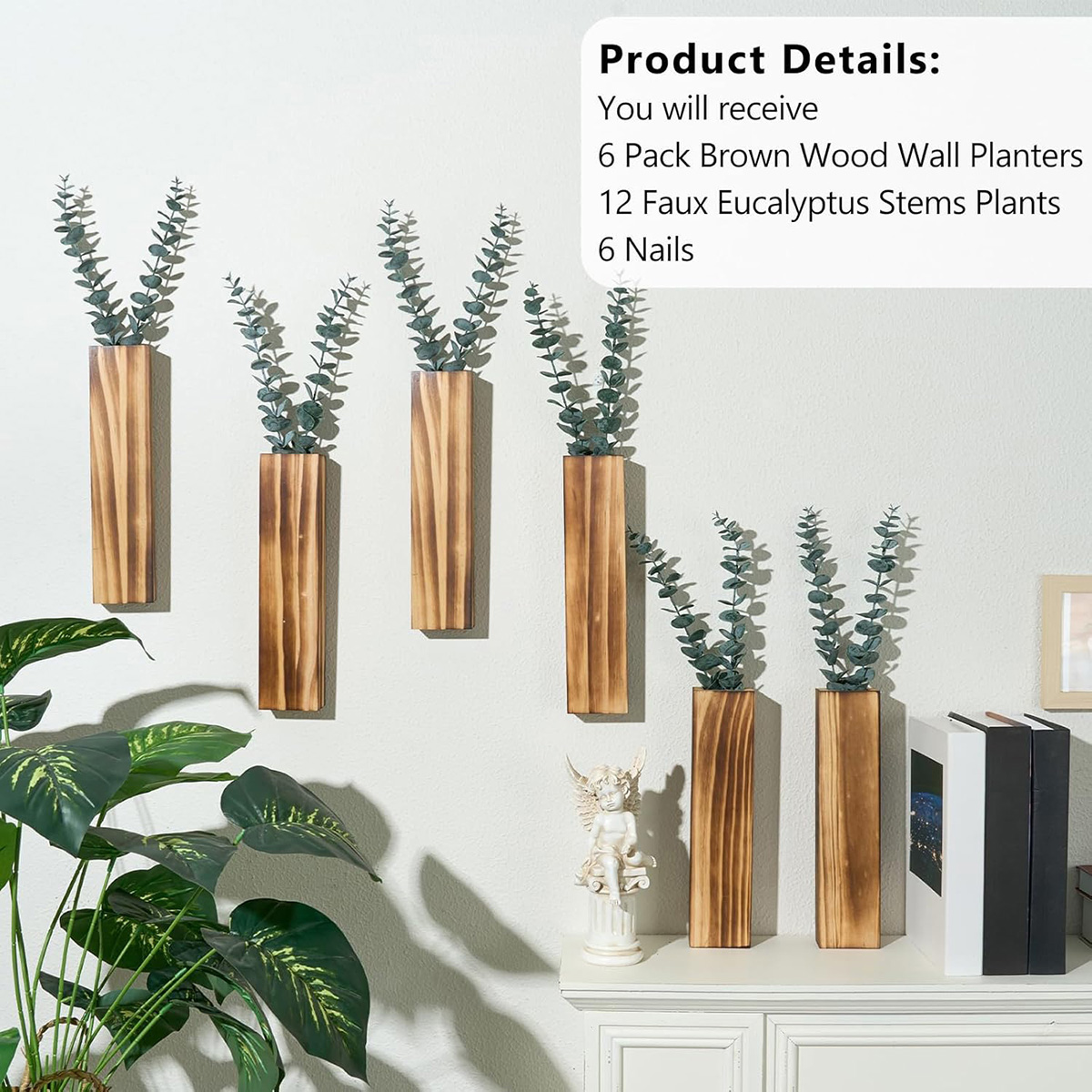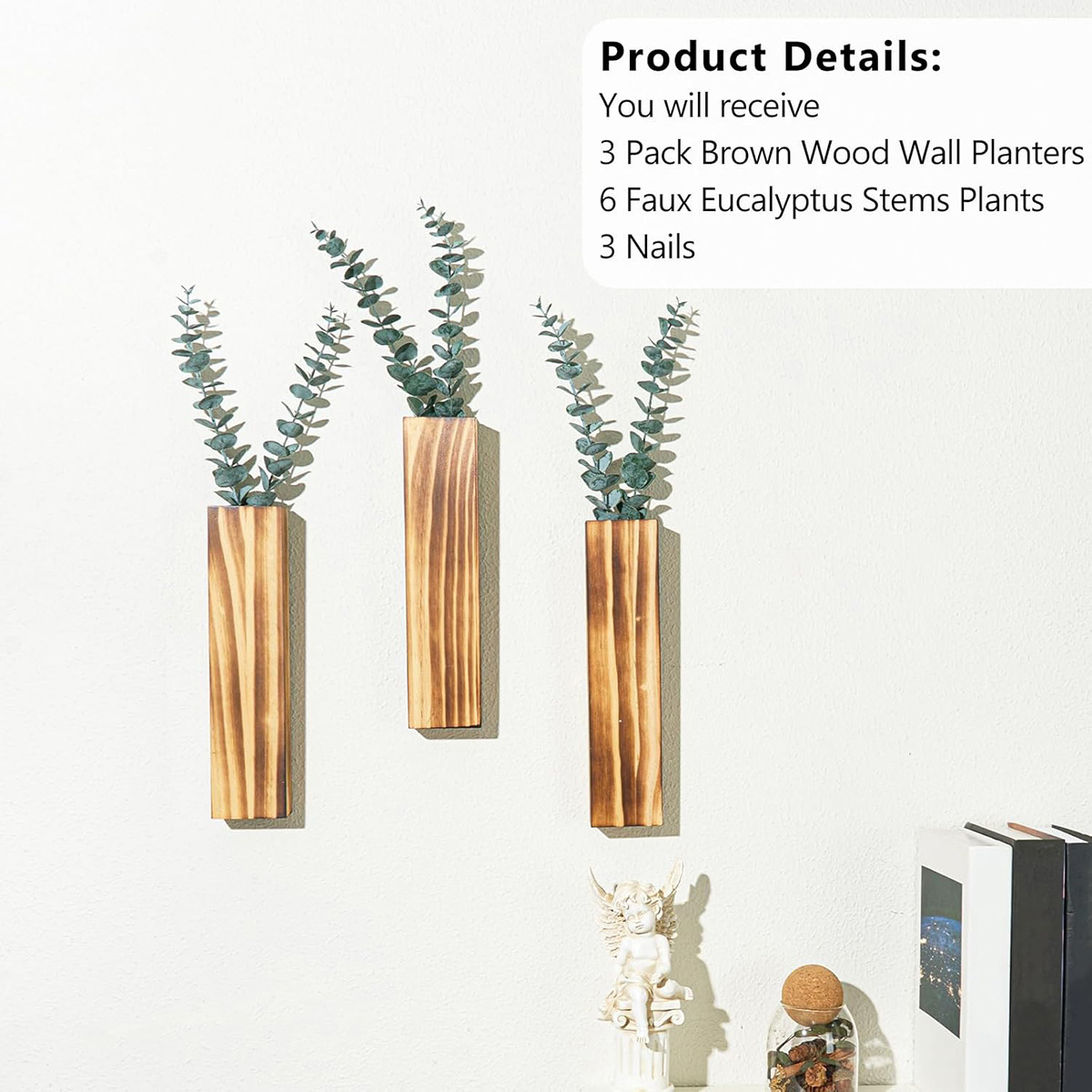 3 Pack Wood Wall Planters with 6 Pcs Artificial Eucalyptus, Plant Wall Decor, Rustic White