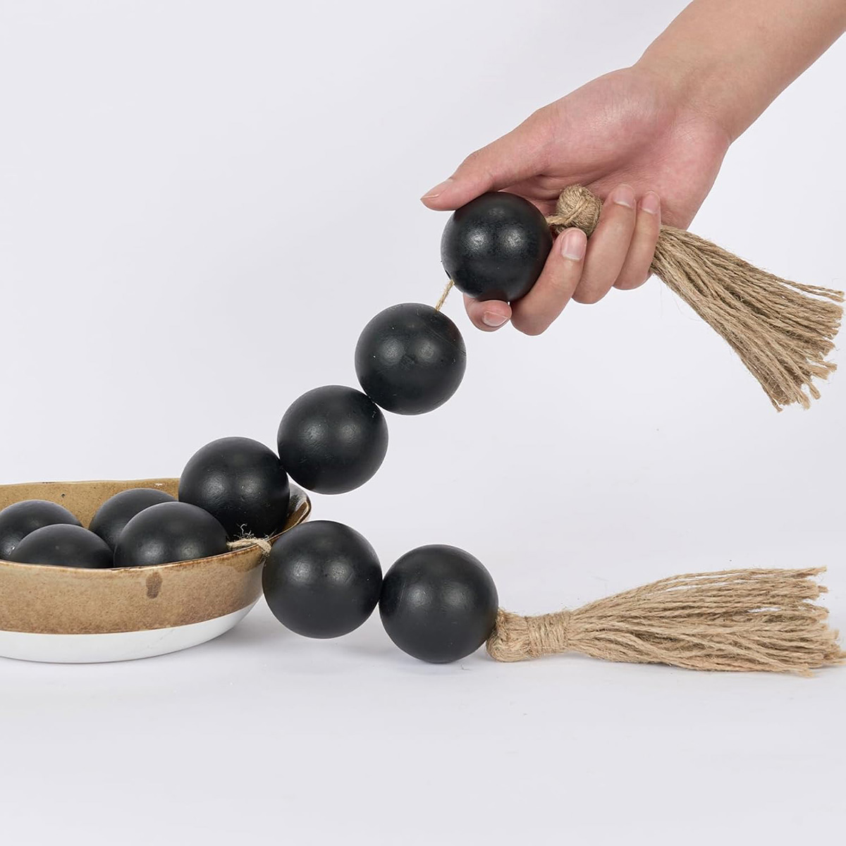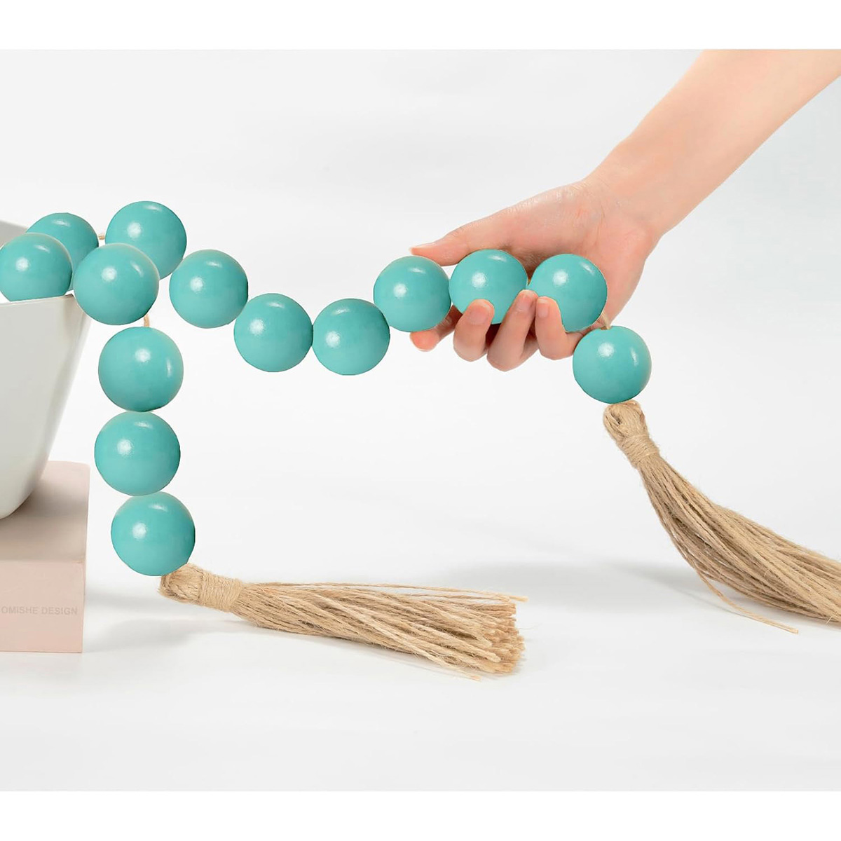 - 【Ideal Decors and Gift】 Wood beads + natural jute fringe, rustic country estate style symbolizes peace and beauty, suitable for room, living room, dining room, bedroom, doorway, hallway, dormitory, office decoration. decorative beads with tassels is a perfect exchange gift for Christmas day, everyday, housewarming gift, and can also be used as an excellent photo background decoration for family, friends.