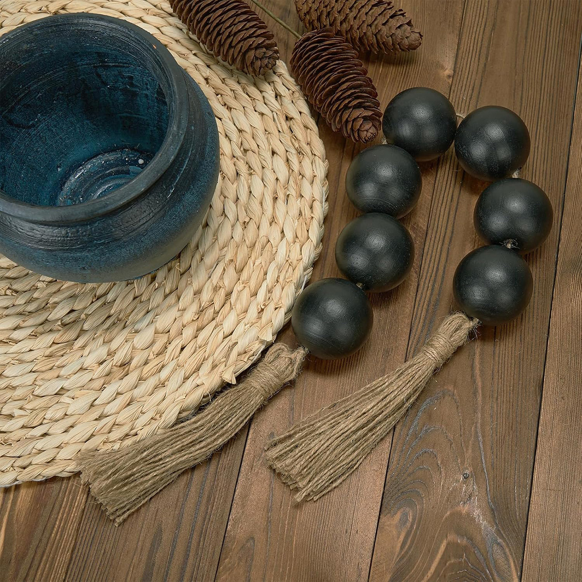 - 【Ideal Decors and Gift】 Wood beads + natural jute fringe, rustic country estate style symbolizes peace and beauty, suitable for room, living room, dining room, bedroom, doorway, hallway, dormitory, office decoration. decorative beads with tassels is a perfect exchange gift for Christmas day, everyday, housewarming gift, and can also be used as an excellent photo background decoration for family, friends.