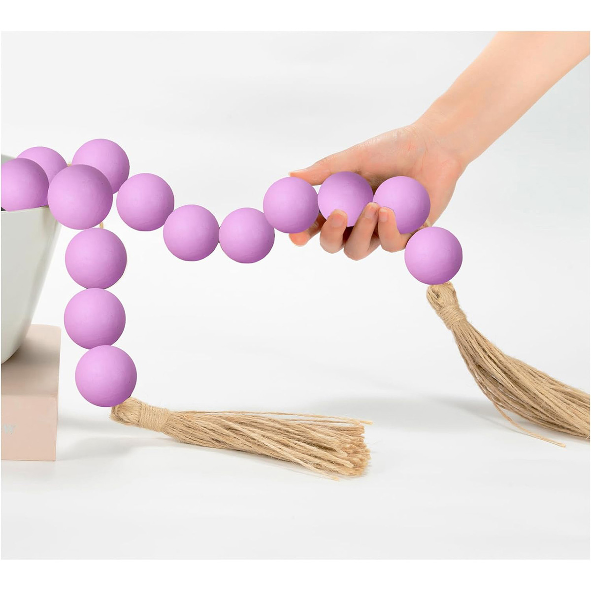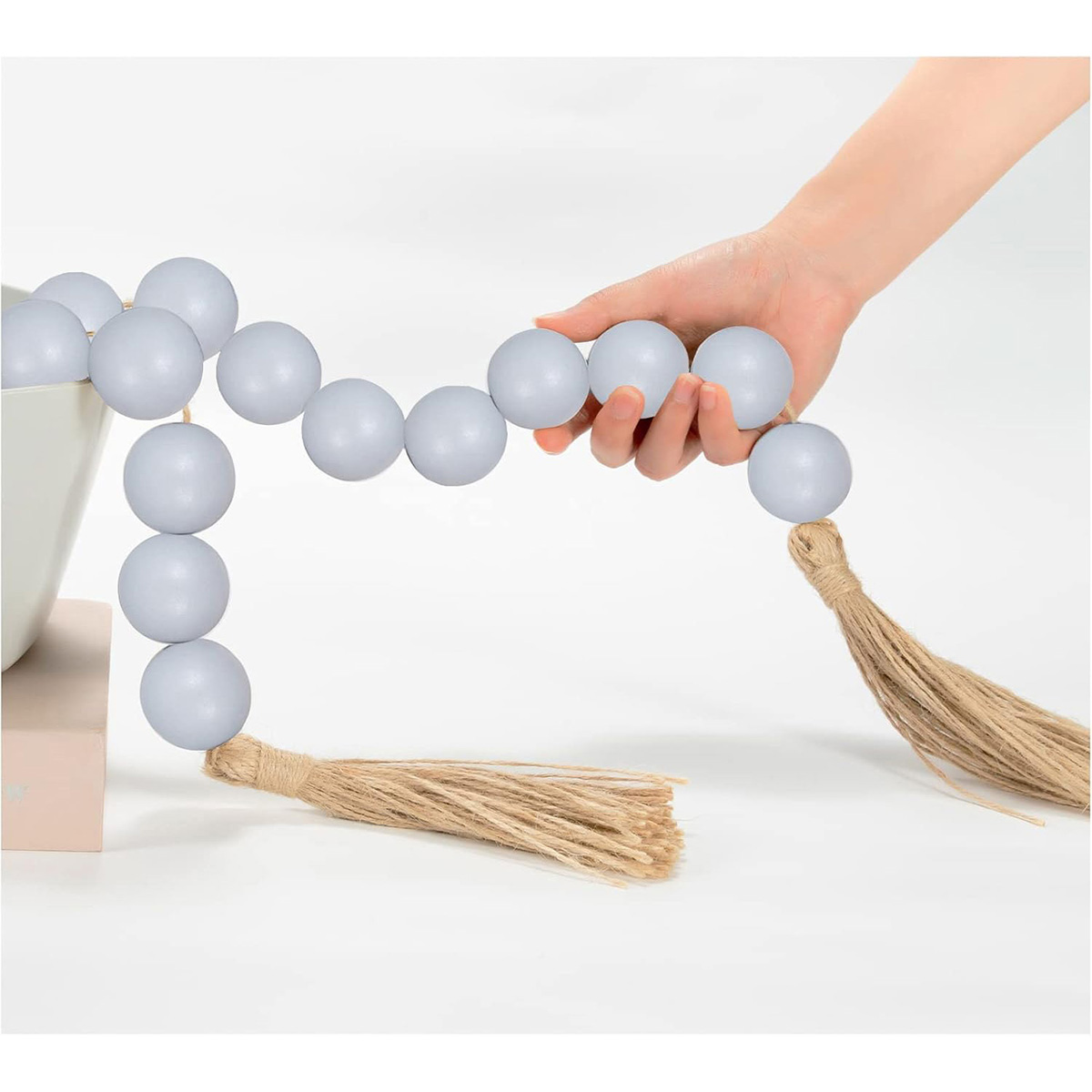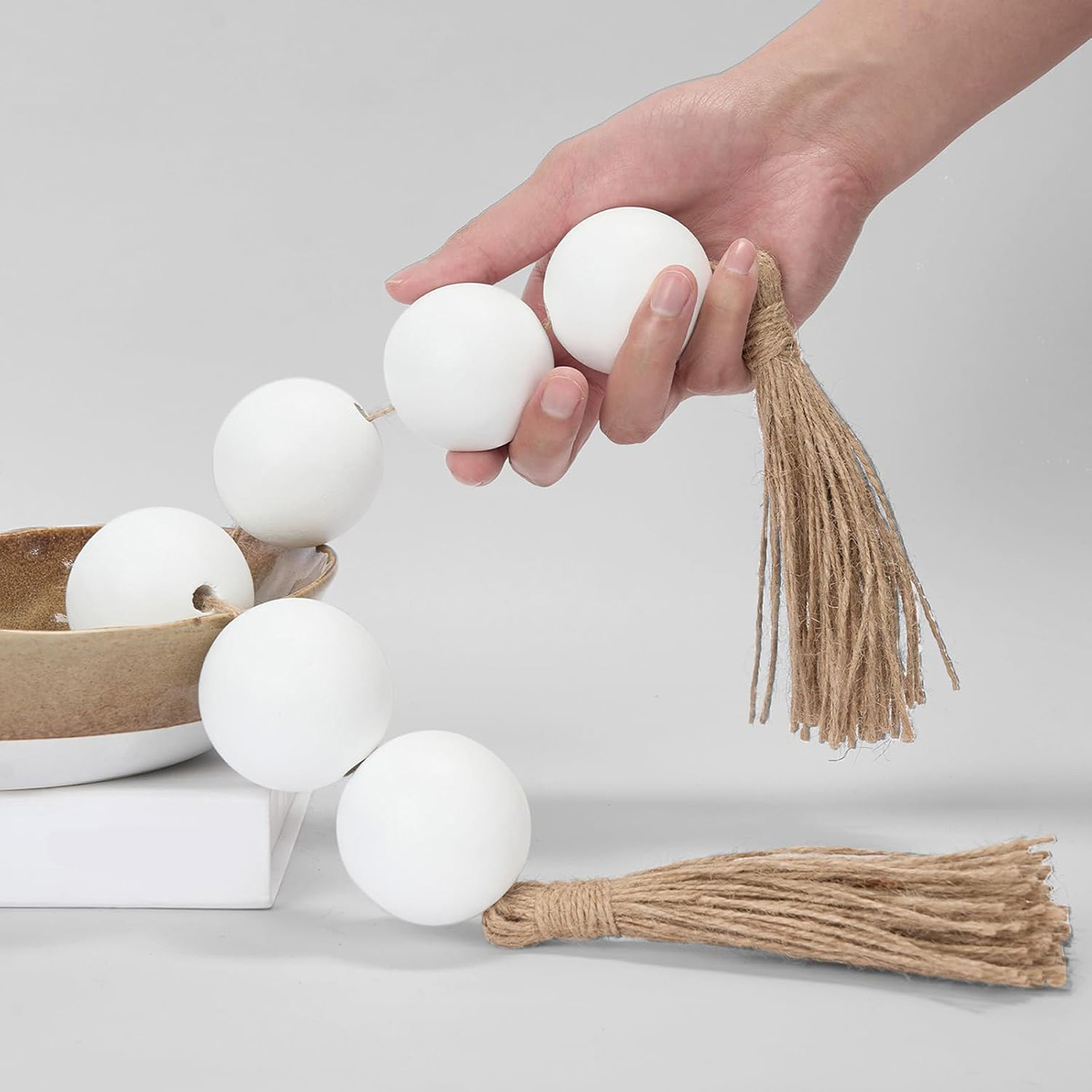 - Size Details: Large wood book stack measures 8.27 x 5.5 x 3 inches (21 x 14 x 7.5 cm). The book decorations are pre-tied with twine and can be decorated directly. Wood bead garland measures 52 inches (132 cm) in total length with 2-inch (5 cm) jute tassels. The wooden beads have a diameter of 0.59 inches (1.5 cm), and You can choose to use bead garland together with decor book, or hang alone or place on a table or shelf to use, you can get 2 bookshelf decorative objects to decorate your home.