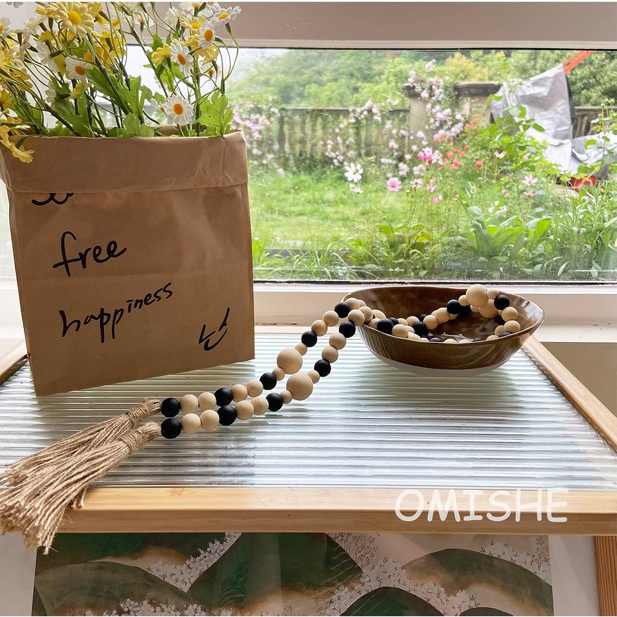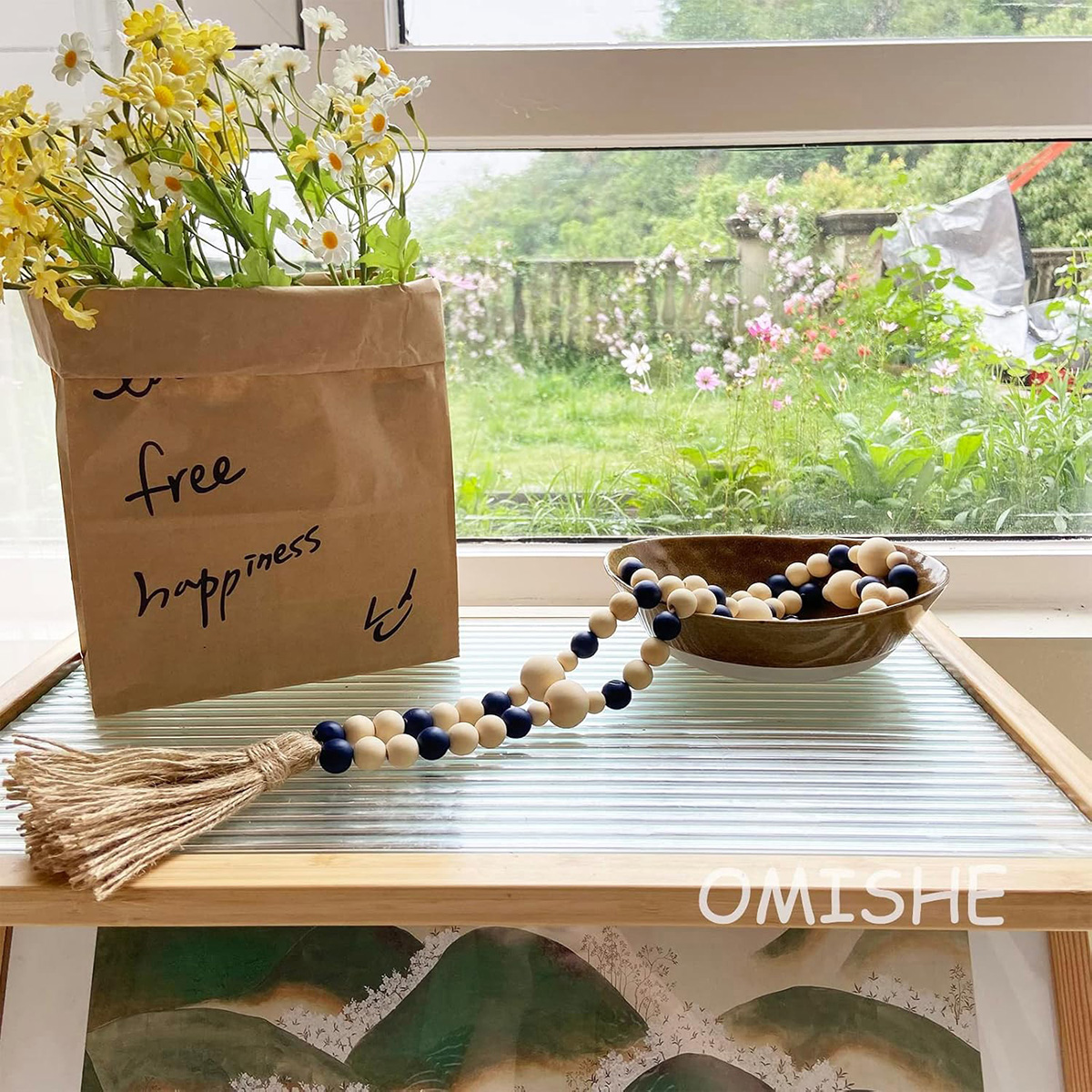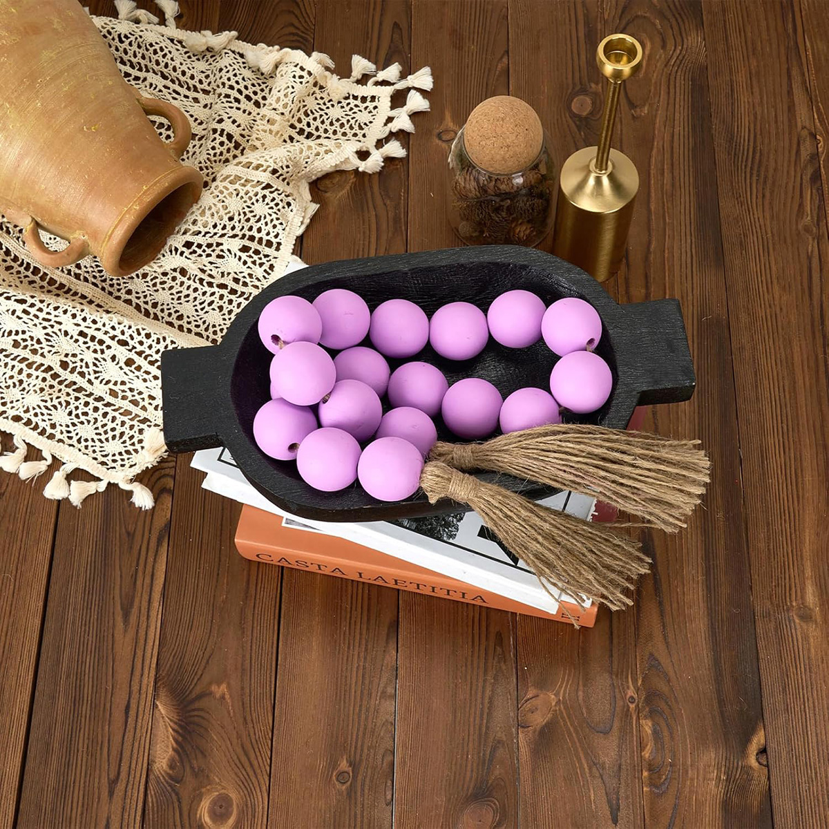 - Quality Wooden Material: Both the book stacks and beads garland are made from high-quality wood that is odorless, ensuring durability and long-lasting use. The decorative books have a realistic appearance with a rustic feel, featuring marble printing and classic colors that add a peaceful ambiance and rustic charm to your house.