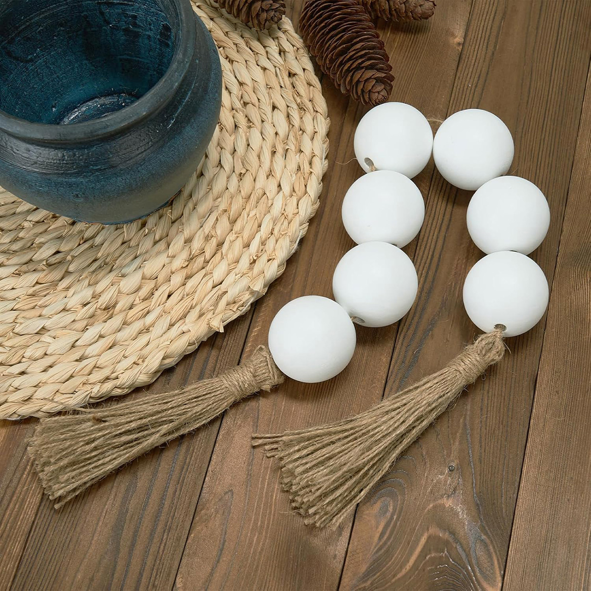 - Size Details: Large wood book stack measures 8.27 x 5.5 x 3 inches (21 x 14 x 7.5 cm). The book decorations are pre-tied with twine and can be decorated directly. Wood bead garland measures 52 inches (132 cm) in total length with 2-inch (5 cm) jute tassels. The wooden beads have a diameter of 0.59 inches (1.5 cm), and You can choose to use bead garland together with decor book, or hang alone or place on a table or shelf to use, you can get 2 bookshelf decorative objects to decorate your home.
